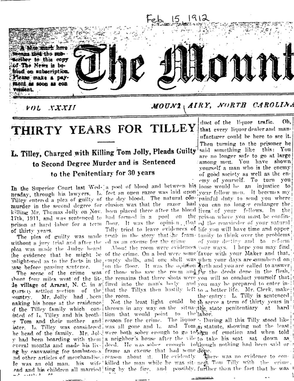 The following Mt. Airy News article was furnished by Steve Davis via Fletcher Edwards. It is diffucult to read in places and we are trying to obtain a better copy.