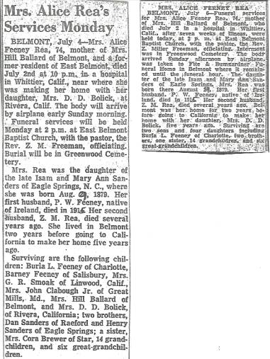 Lenora Alice (Sanders) Feeney Rae Obit.
