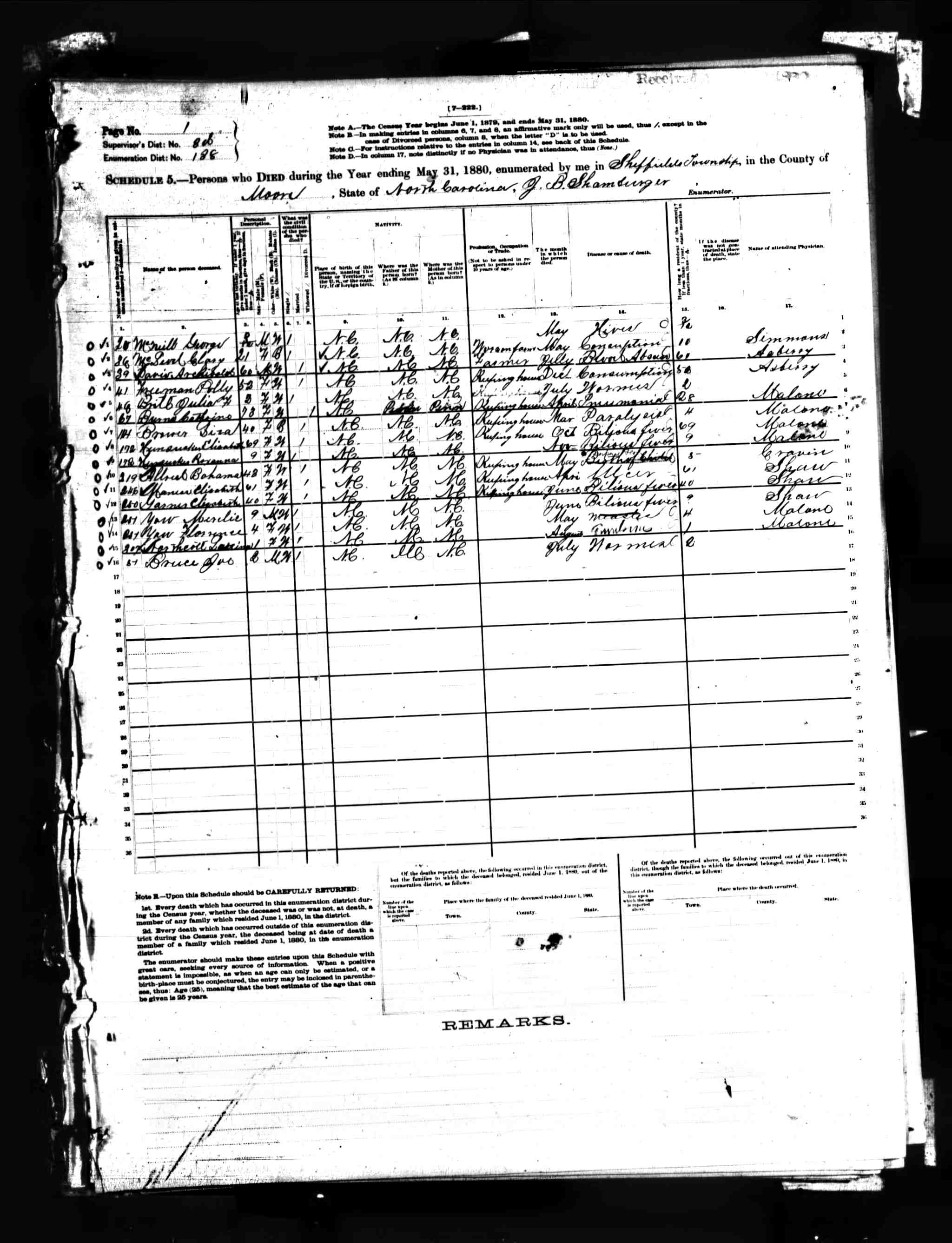 Archibald McNeil Davis Census : 1880 in e.d.138;p-6;t-9;roll #973 Moore Co., NC